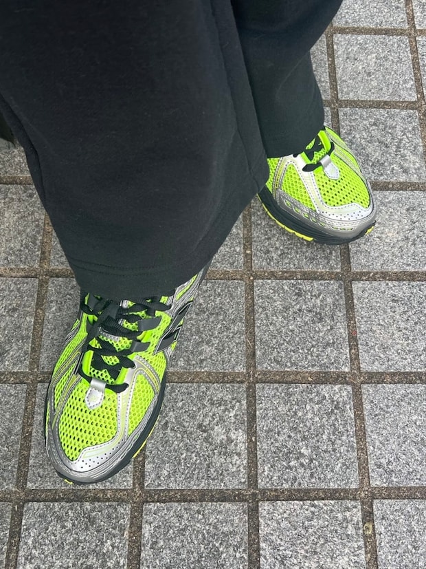「春夏はスポーツMIXなスタイリングをしたいと思い合わせるシューズを探していたところ、たまたまふらっと入ったお店で見つけました。ランニングシューズらしいカラーリングとフォルムに惹かれ、どんなスタイリングに合わせるかいろいろと想像が膨らみ、購入に至りました」New Balanceのスニーカーは本人私物
