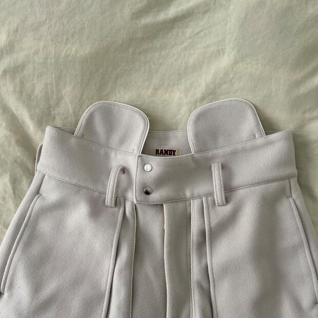 メンズブランド、RANDY(ランディ)のパンツです。RANDYはアートや建築などから着想を得たコレクションを展開し、デザインやシルエット、配色など、他にはないバランス感のアイテムが多く、毎シーズンの発表を楽しみにしているブランドのひとつ。冬用のパンツは機能性重視のため、心がときめくような“あったかパンツ”なんて素敵なブランドにはないだろうなあ……思っていた矢先に出合ってしまい、気づいたらポチっていた次第です。