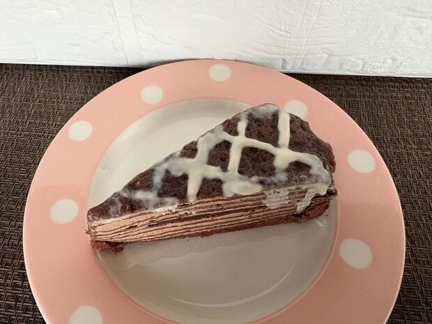 やわらかくしっとりとしたミルクレープの中にはチョコの板が入っていて、パリッとしたいい食感!
