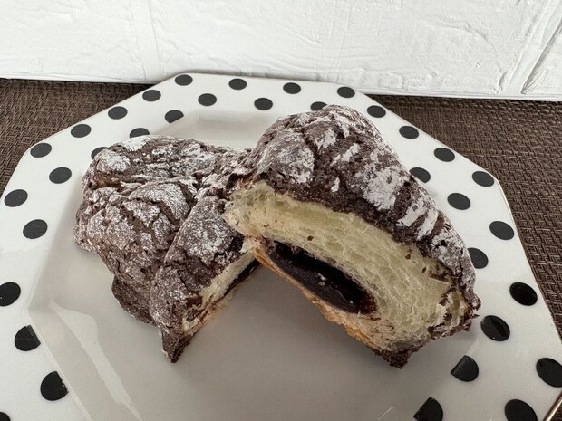 何層もあるふんわりとしたココア味のクロワッサン生地に、中にはチョコクリームとチョコホイップの2種類が入っています。