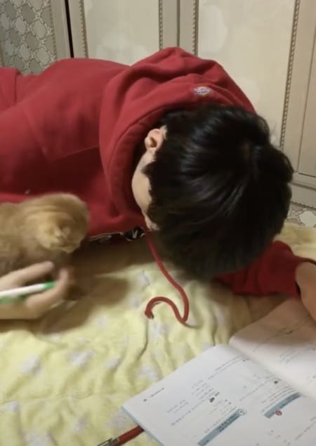 懐に潜り込んで、パーカーの紐で遊んだりと