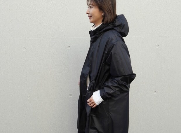「ノースフェイスのアウターは実はレインコートなのですが、形もよくて普段から着ています。軽くて防水でフードもついて折りたためるので働くママにはぴったり。雨が降りそうなとき、雨が止んでしまったとき、もうひとつコートを持たなくてもいいので本当に楽。おしゃれなレインコート、オススメ」THE NORTH FACEのコートは本人私物