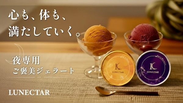 FoodPrototypingQuestは、頑張る女性の夜のひとときを心身ともに満たす美容ナイトケアジェラート「LUNECTAR(ルネクタ)」のプロジェクトを応援購入サービス「Makuake(マクアケ)」にて10月14日(火)より開始した。