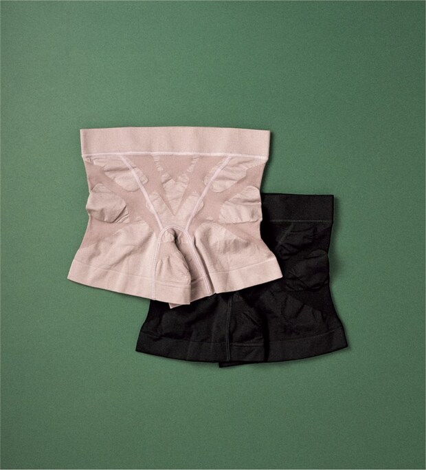 皮膚の感覚センサーを利用した独自の構造で、はくだけで骨盤を正しい位置へと整えてくれる。デリットテック ショーツ スキングレージュ、ブラック サイズ全3種 各¥7,800(ドクターイースト)