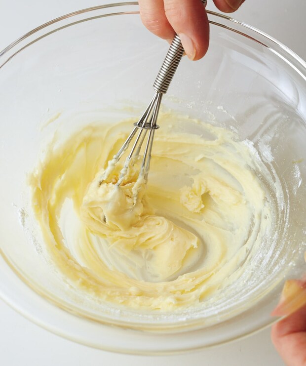 バターと薄力粉は先によく練り混ぜておくと、ダマになりません。この状態で1週間ほど冷蔵保存可能なので、多めに作っておくと便利。