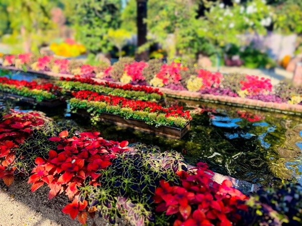 フレンドシップガーデンは、秋色のコリウスやマリーゴールで彩られた英国庭園。写真撮影におすすめだ。