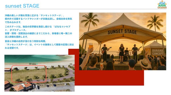 sunset STAGEが用意され、サンセットと音楽がシンクロする瞬間、潮風とともに空の色が刻々と変化し、幻想的な光景が広がる。フェス全体を黄金色に染め上げる、この時間帯だけに現れる“マジックアワー”を堪能しよう。