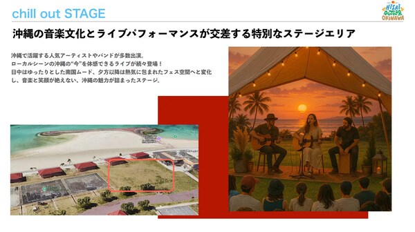 SUNSET TIME(17:00~)は、夕陽と音が溶け合う、マジックアワーのステージ。Chill out STAGEや、