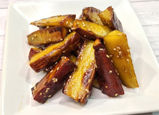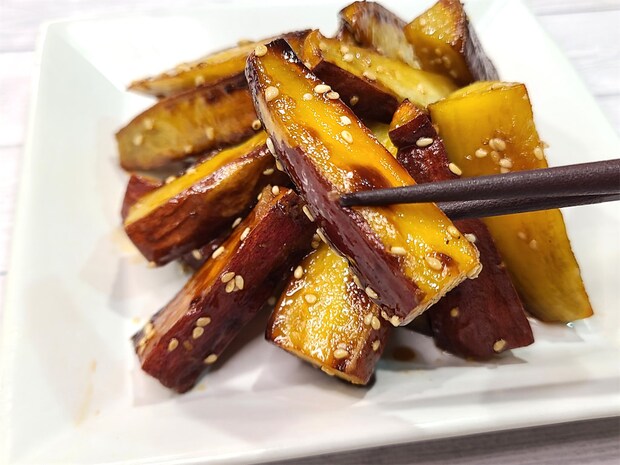 今回わたしはてんさい糖を使いましたが、これもやさしい甘さになっておいしかったです。香りは甘く、味は上品な甘じょっぱさ。さすが一流シェフの作る大学芋レシピだと感じました♡