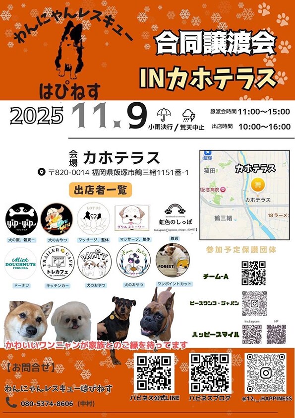 The post 【飯塚】11月9日(日)、カホテラスで「合同譲渡会 IN カホテラス」が開催されます! first appeared on 筑豊情報マガジンWING.