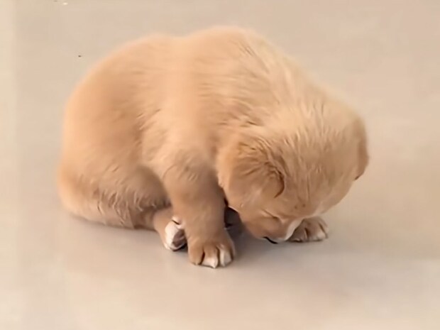 眠気と必死に戦う子犬さん。