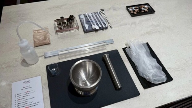 使うのはこちらのキット。型抜きや模様をつける細かいヘラなどがテーブルに並びます。