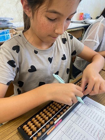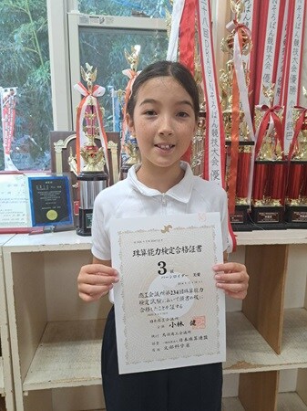 美愛さんはオーストラリアからの留学生で、日本語も九九もおぼつかない状態から、毎日50分間「両手そろばん」による練習を継続して実施。わずか半年後に3級に挑戦し、ほぼ満点という高得点で合格した。「(前略)オーストラリアに戻っても、そろばんは続けたい」と意欲的だ。