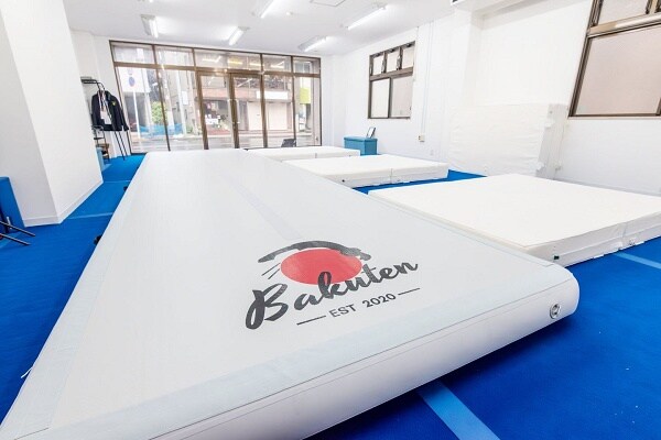 教室内全面にチアマットを敷設、床全体が衝撃吸収仕様となっており、転倒や着地時の安全性を高めている。また、高品質なエアーマット(空気式補助マット)を完備し、初めての技や高度な技でも安心して練習ができる。