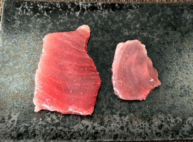 脂がのった腹側の部分と、尾のほうの部分とが販売されていますが、こちらは尾のほうです。