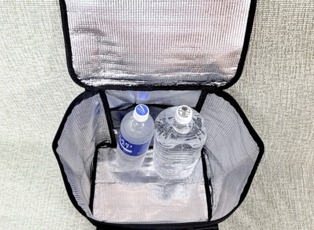 容量は2リットルのペットボトルが6本入るほどの大きさで、買い物カゴ1杯分がすっぽり収まります。
