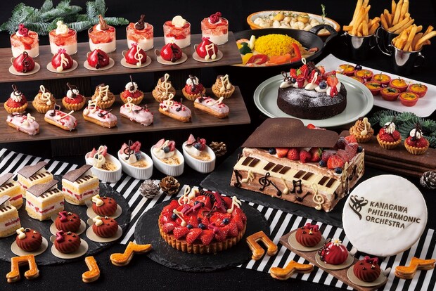 ローズホテル横浜は11月1日~11月3日の3日間、1階の「ブラスリー ミリーラ・フォーレ」にて、地元オーケストラ「神奈川フィルハーモニー管弦楽団」とのコラボレーションイベント「スイーツオーケストラ2025」を開催する。事前予約制。価格は税込み6,500円(サービス料含む)。