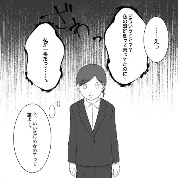 私はアツシくんの言葉に「・・えっ」と言うのが精一杯でした。どういうこと??私の事好きって言ってたのに・・。私が一番だって・・。今いい感じの女の子って誰よ・・。私の心は一気に色々な感情でぐちゃぐちゃになりました。