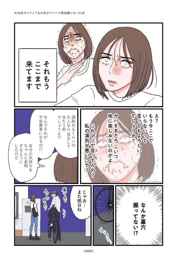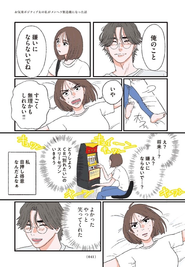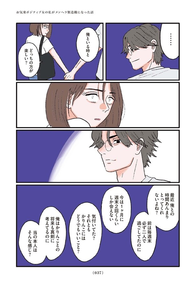 SNSで注目を集めた『メンヘラ製造機だった私が鼻にフォークを刺された話』の続編「お気楽ポジティブ女の私がメンヘラ製造機になった話」 (漫画:前田 シェリー かりんこ)から全10回連載でお届け。今回は第6回目となる。