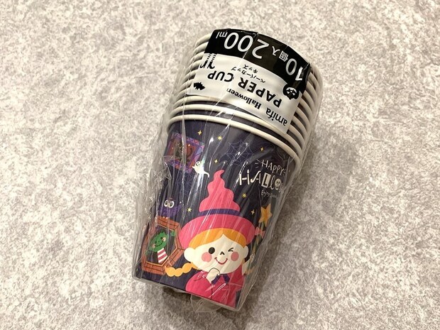 ハロウィンイラストが可愛い「ペーパーカップ」もおすすめです!200mlサイズが10個入って110円(税込)。
