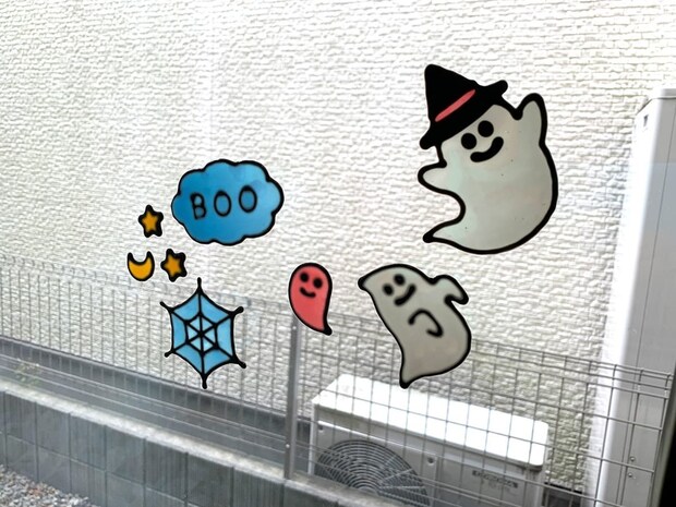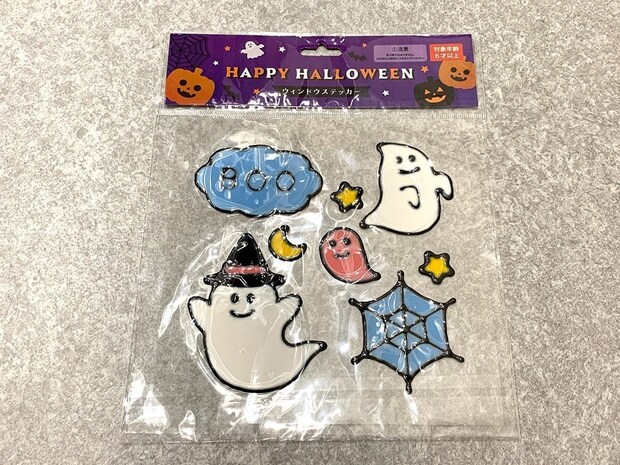 窓ガラスを手軽にハロウィン仕様にできる「ウィンドウステッカー」。おばけやクモの巣など、可愛いモチーフのセットです(怖くないデザイン!)。