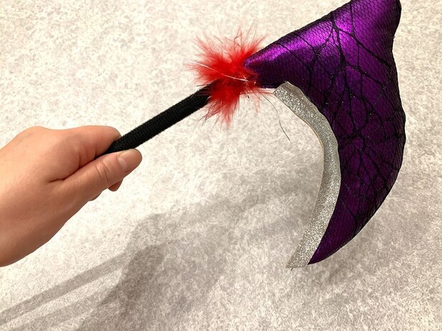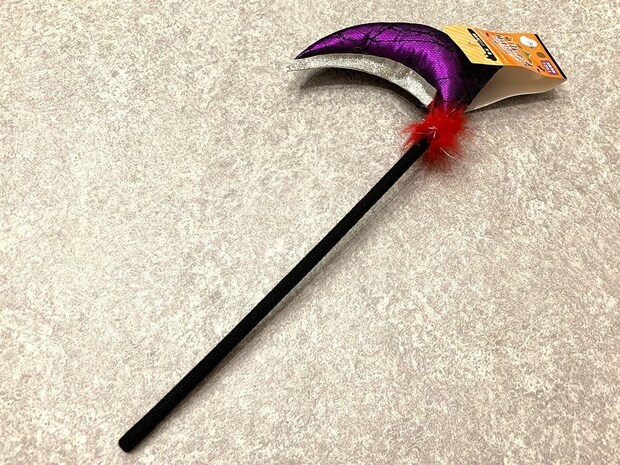 紫と黒のハロウィンカラーに、キラリと光る銀色の刃がちょっとした迫力!約42cmと意外と長めで、柄も子供が持ちやすい硬さです。