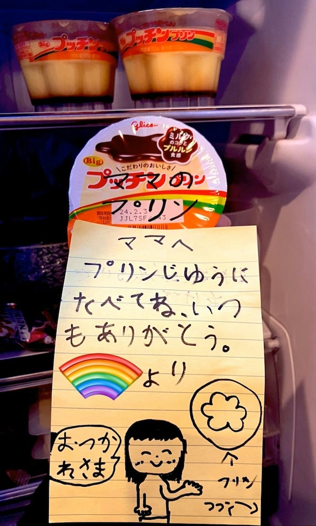 この投稿に「世界一おいしいプリンだ」「『じゆうに』っていいな!冷蔵庫に入ってても、子どもが好きな食べ物って遠慮することよくあるから…」というリプライがありました。間違いなくこれは世界一おいしいプリンでしょうね。