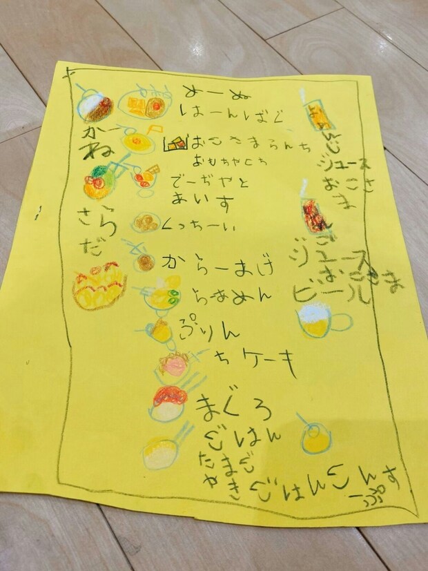 おおでゆかこさんの5歳の娘さんは、保育園でレストランのメニューを作ってきたそう。いったいどんなメニューなのでしょうか。