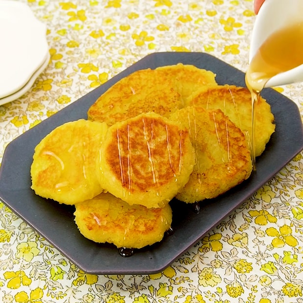 しっとり甘くてもちもちのスイートポテト風いももちをご紹介!つまみやすくておやつにもぴったりです♪お好みではちみつはメープルシロップにしたり、黒ごまをかけてもおすすめです。