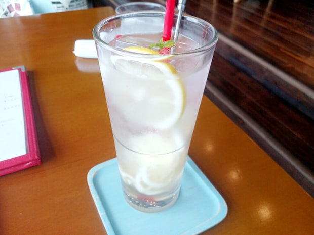 レモンスカッシュはレモンの輪切りがたくさん入っています。ミントも浮いていて、爽やかですね。