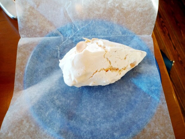 お次はムラングコックです。卵白を泡立てて、焼いたお菓子です。中にはアーモンドスライスが入っているようです。