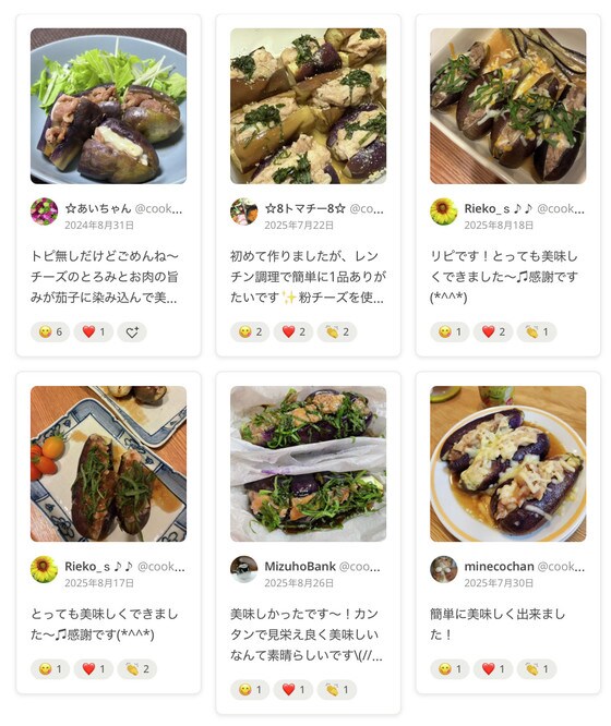 つくれぽ(つくりましたフォトレポートのこと)にも「おいしかったので、また作りました」「簡単でおいしかったです」「お肉のおいしさがなすに染みてます!」などの嬉しい声が届いています。