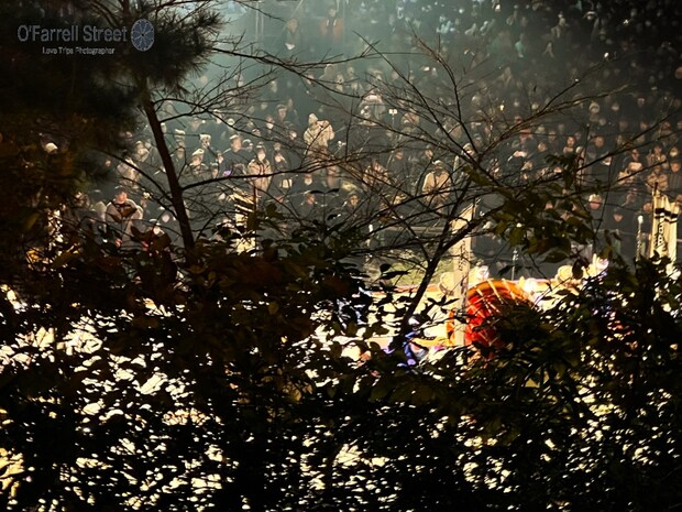 五老山内に入山すると座る場所はなく、立って点火を待つようになります。五老山内は安全確保のため、一方通行となっています。点火後の形態としては、混雑を緩和するためウォークスルー方式が取り入れられ、三脚の使用も禁止です。17時を過ぎるころには、入山規制や周辺道路も閉鎖され、人の波で思うように歩けない状況なので、お子様連れの場合は決して手を離さないようお気を付けください。