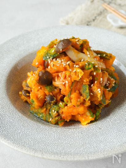甘みのあるカボチャと、ピリッと辛いキムチ。正直、「味が喧嘩するかも…」と思っていたのですが、驚くほど相性抜群でした!