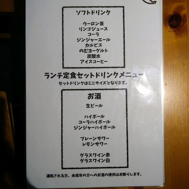 ちなみに、メガランチ以外の定食メニューには、プラス200円でドリンクをセットできるのですが、ソフトドリンクだけではなく生ビールやハイボールなどといったアルコール類もチョイスできるのは珍しい。また、昼夜問わず100種類を超えるドリンクメニューはいつでも注文でき、「混沌と青春の間」や「愛しさと切なさと」など色鮮やかでネーミングもユニークな、オリジナルのノンアルコールカクテルも多数ラインナップしています。