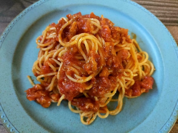 瓶を開けると、見た目はひき肉を使った通常のボロネーゼソースとほとんど変わりません。