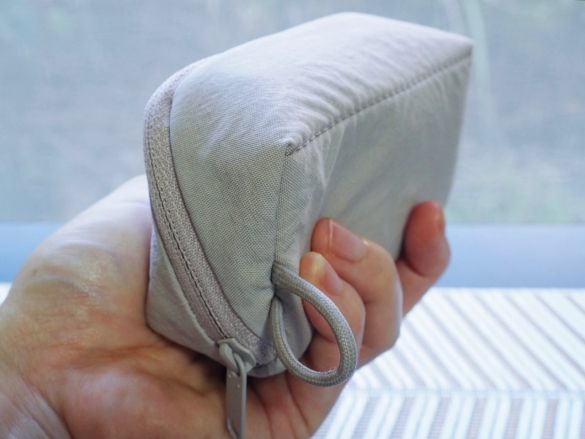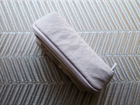 表面だけ見るとスマホの画面よりも小さく、ポーチインポーチとしても使えます。生地には独特のシワとハリ感が特長のナイロンを使っているそうで、シャカシャカすぎず手にしっくりなじみます。それと、汚れもつきにくそう。