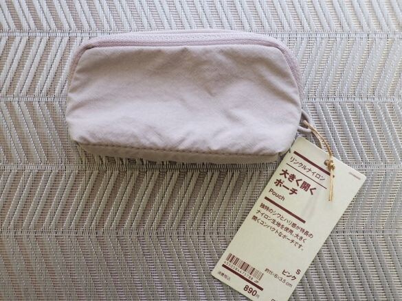 筆者が購入したのは、ピンクの「リンクルナイロン 大きく開くポーチ」。ほかにもダークグレーとグレーがラインナップした全3色展開です。日常使いしやすいくすみカラーが、大人かわいいですよね。