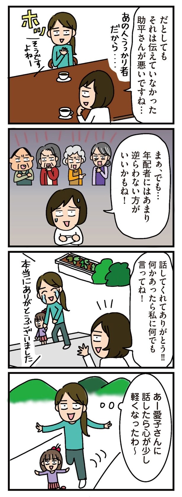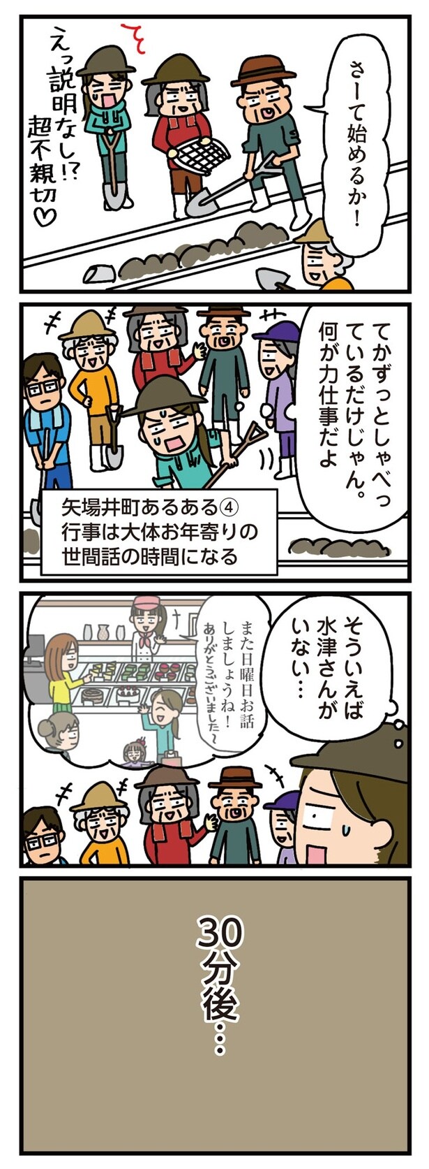 前回、懇親会で手土産を持ってこなかったことを町民に説教され、言い返してしまったアキラ。町民との気まずさが残る中、自治会活動の水路掃除の日がやってきた。集合場所にアキラが向かうと「ダメだよ 女が来ちゃ」と言われて…?