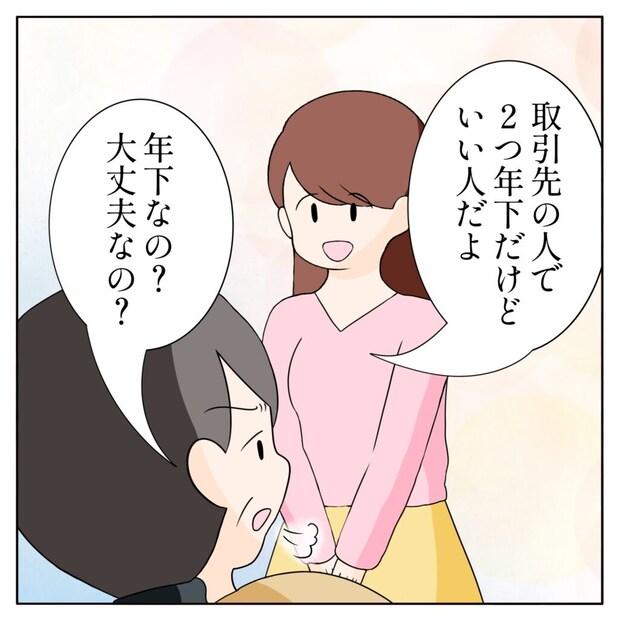 「取引先の人で、2つ年下だけどいい人だよ。」と話すと、「年下なの?大丈夫なの?」と母はため息交じりにけげんな顔をしました。こういう態度を取られても、私はもう慣れていました。