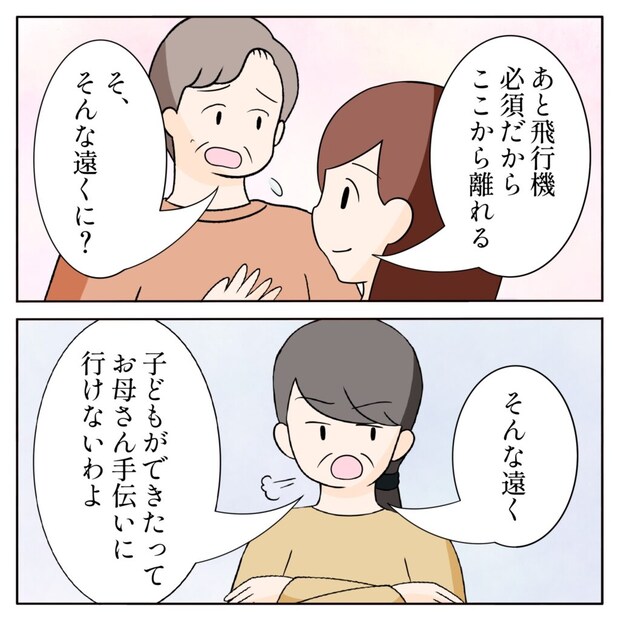 「あと、飛行機必須だからここから離れる」と言うと、父が「そ、そんな遠くに?」と寂しそうな顔で動揺したように言ってくれたのが私は嬉しかったです。でも母は「そんな遠く、子どもができたってお母さん手伝いに行けないわよ。」と、未来の出来事にまで文句。