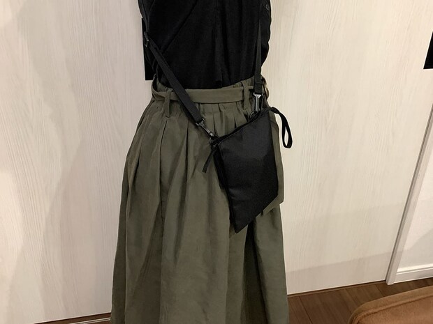 サコッシュには長いショルダーベルトが付いているので、肩に楽々かけられました。余計な装飾が付いておらず無印良品らしいミニマルなデザインとなっており、どのような服装にも合わせやすいです♪