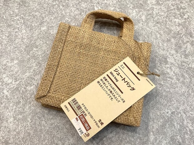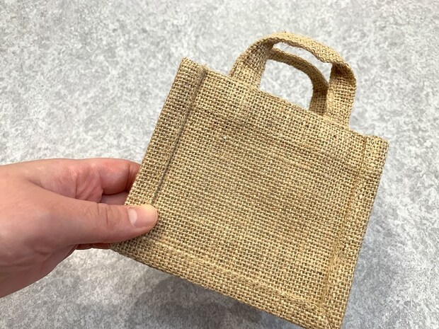 今回は一番小さいミニサイズのジュートバッグを購入しましたが、他にもA6・B5・A4・A3サイズのバッグも売られていたので、入れたいものに応じてサイズを選択できます。