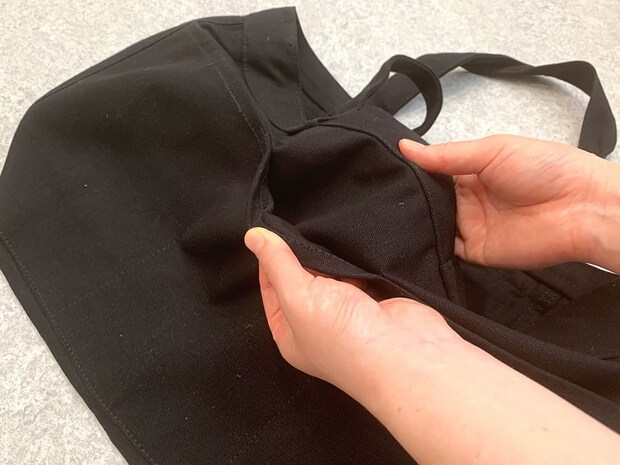 非常に硬く丈夫な素材でできており、バッグの中に何も入れずとも自立します。