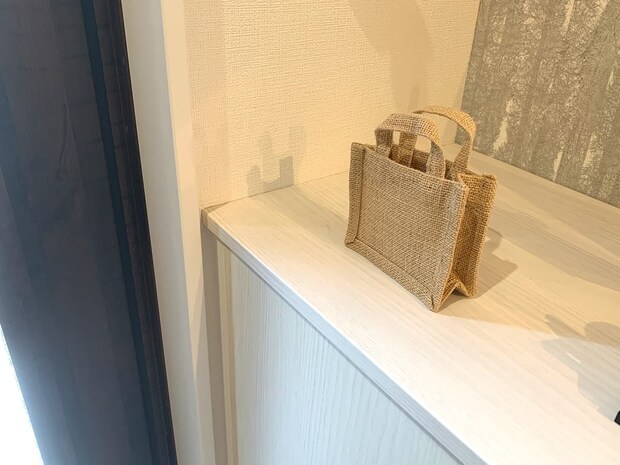 ジュートバッグを玄関に置いてみましたが、ナチュラルな色味がやさしく落ち着いた雰囲気を出していますよね。空間に溶け込むデザインで、自然素材ならではの温もりも感じます♪