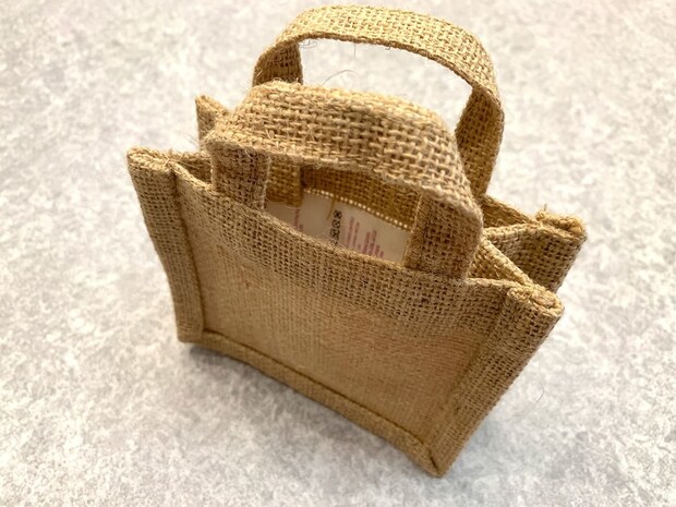 黄麻という植物繊維を原料にして製造されている「ミニジュートバッグ」をご紹介します。