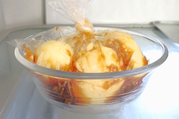 3. ポリ袋に2と黒酢ネギだれを入れてなじませ、冷蔵庫でひと晩漬けます。