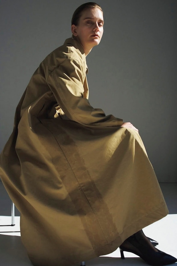 ライター高橋(以下T) 気になるといえば、スナップでみなさんがよく着用しているなと思うブランド。そのうちのひとつ、ケイル①は、着方がいろいろ楽しめるような、ちょっとユニークなアイテムが充実しているイメージ。たっぷりの用尺が贅沢なトレンチコートを既にオーダーしました! というコメントも見かけました。