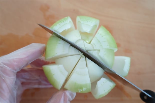 玉ねぎはヘタまで切り落とさないように気をつけてくださいね。
