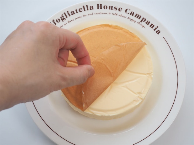 7. 固まったら、竹串などでフチをやさしくはがし、ひっくり返してお皿に取り出す。クッキングシートをそっとはがす。
